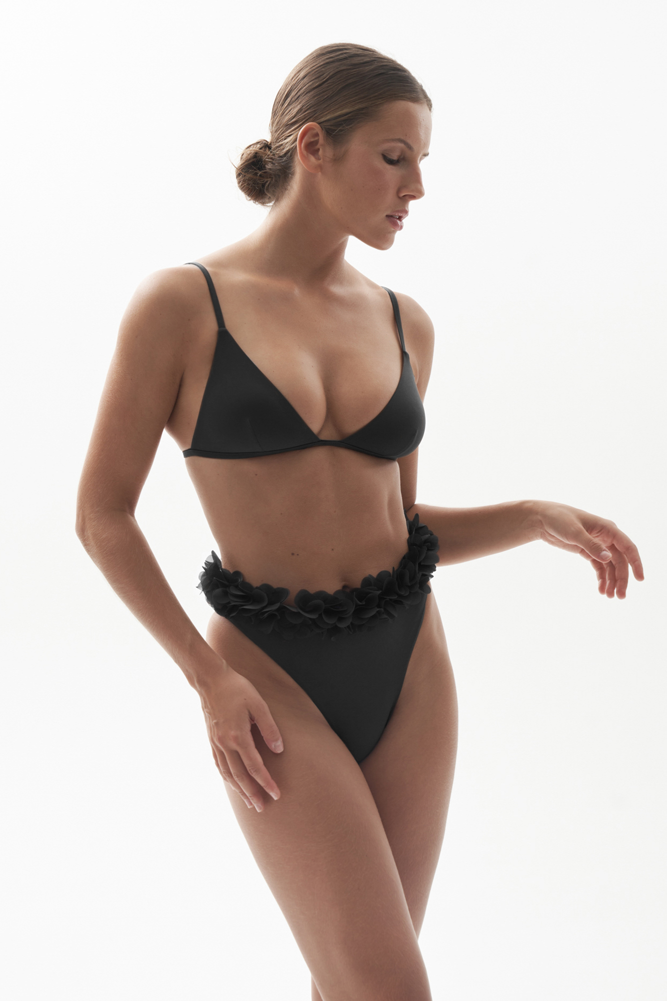 A perfect fitting triangle accompanied by a slip with a belt of petals.