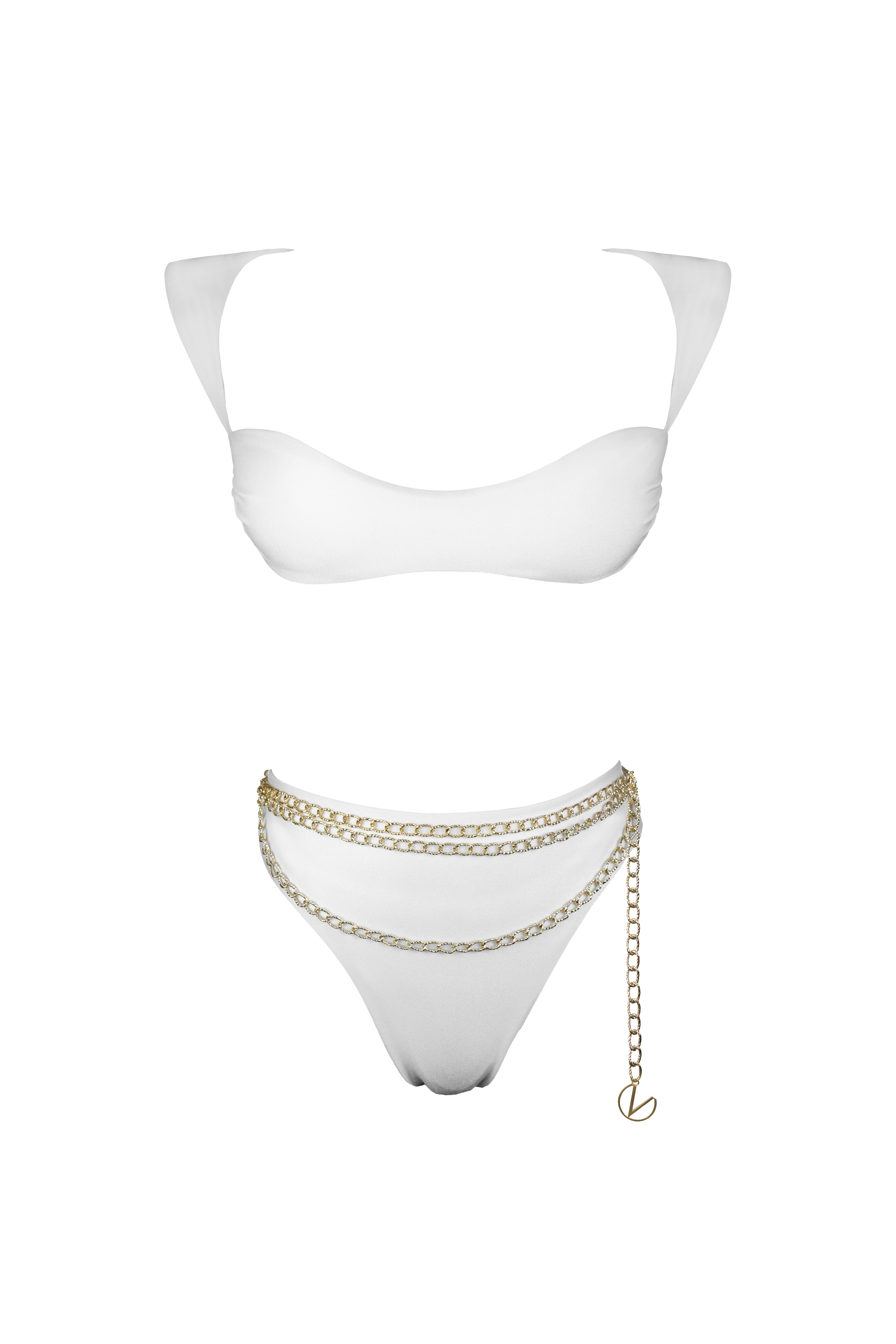 Maria Bikini comes with our detachable diamond-cut chain belt.